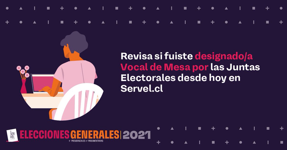 Finalmente la lista definitiva de vocales de mesa que contemplaba las excusas presentadas en los días establecidos se publicará el próximo sábado 6 de noviembre. Por otro lado el jefe del organismo electoral detalló que en las elecciones del próximo 21 de noviembre habrán 46888 mesas receptoras de sufragios y 5176 miembros de. Este sábado 30 de octubre el Servicio Electoral Servel publicó la nómina de los vocales de mesa 2021 para las Elecciones Generales que se realizarán el 21 de noviembre.
