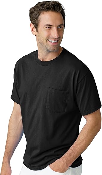 Amazon Com Hanes 6 Oz Tagless T Shirt With Pocket Black 2xl Clothing Shoes Jewelry